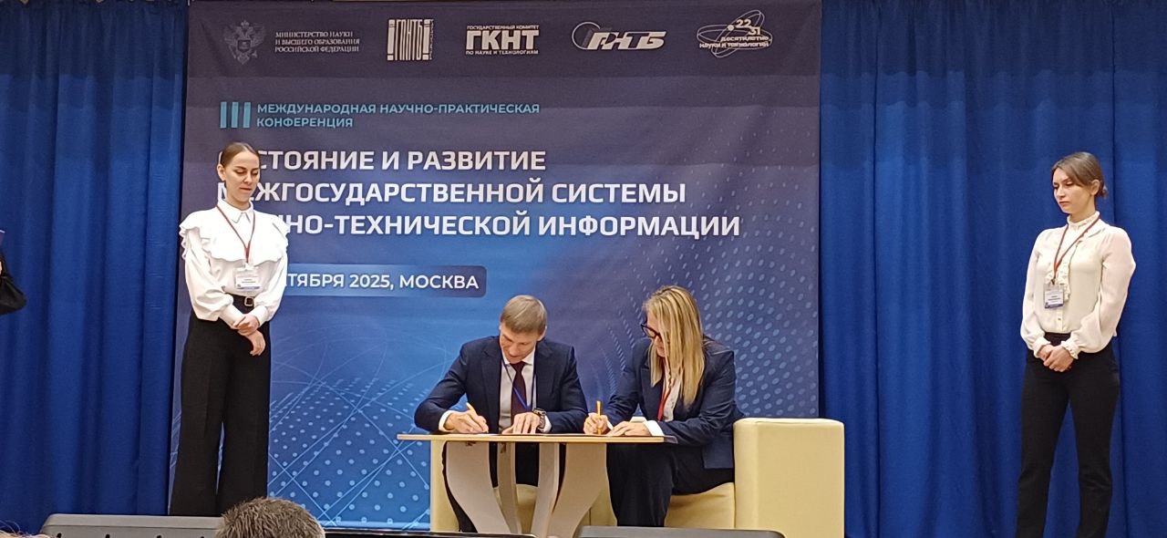 9 октября 2025 года в рамках III Международной научно-практической конференции «Состояние и развитие межгосударственной системы научно-технической информации», которая проходит 9-10 октября в ГПНТБ России, состоялось подписание Соглашения о сотрудничестве между Всероссийским институтом научной и технической информации Российской академии наук и Государственной публичной научно-технической библиотекой России.