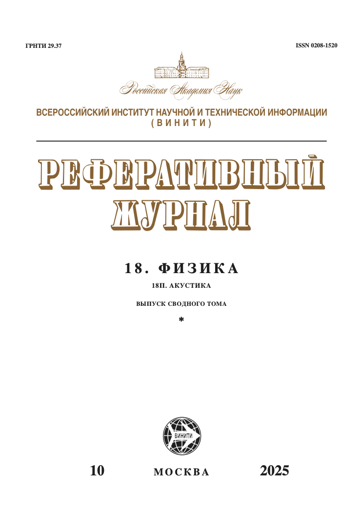 На страницах реферативного журнала отражаются результаты актуальных исследований в области акустики, при этом уделяется внимание как фундаментальным вопросам, таким как распространение акустических волн и акустические эффекты в жидкостях, газах и твердых телах, а также воздействие акустических волн на эти среды, нелинейные явления, случайные процессы, акустоэлектроника, акустооптика, так и прикладным аспектам, таким как применение акустических волн, в частности, ультразвуковых, в биологии и медицине, источники и приемники акустических волн, акустические шумы, электроакустические устройства, запись и воспроизведение звука, акустоэлектронные устройства, акустооптические устройства, устройства визуализации. Рассматриваются вопросы акустических измерений, в частности, метрология и стандарты, методики и аппаратура для измерения акустических полей, скорости и поглощения звука, параметров материалов, дефектоскопии и других видов диагностики, особое внимание уделяется акустическим метаматериалам. Также представлены работы по акустике природных сред, в частности, атмосферной акустике, гидроакустике, геоакустике. Приводятся результаты работ по архитектурной и строительной акустике, в частности, акустике помещений, звукопоглощающим материалам и конструкциям, звуко- и виброизоляции. Рассматриваются физиологическая и биологическая акустика, а также речь. Выпуски РЖ также содержат результаты исследований в области музыкальной акустики и акустики музыкальных инструментов. Входит в состав сводного тома «Физика».